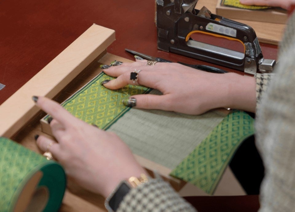 表紙を色とりどりの美しい「西陣織」から選んでつくる特別な「御朱印帳づくり」や、木肌の美しさが特徴の京都の銘木「北山杉」を鉋(かんな)で削って仕上げるオリジナルの「箸づくり」、井草で織った天然の畳表(たたみおもて)に、畳縁(たたみべり)と呼ばれる伝統模様が織り込まれた帯状の布を縫い合わせ、実際の畳づくりと同様の工程でつくる「ミニ畳づくり」など、完成した作品はそのまま旅の思い出としてお持ち帰りいただけます。