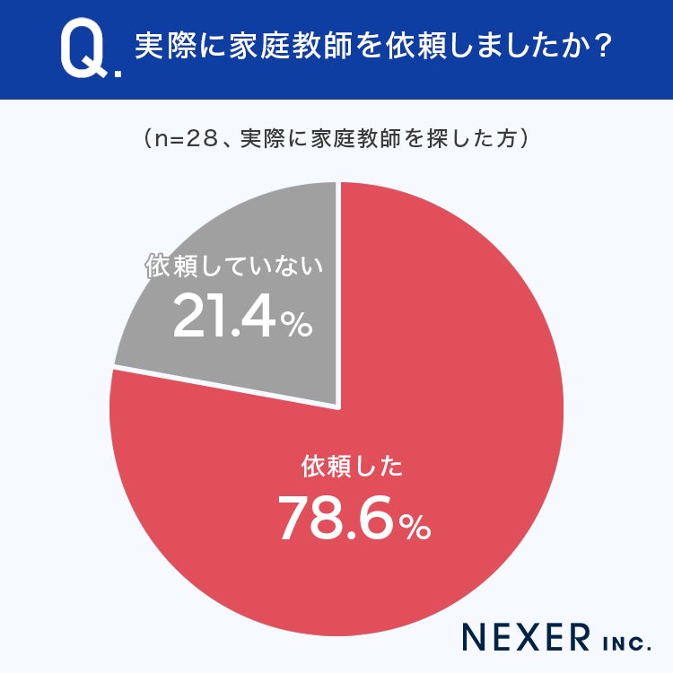 およそ8割の方が「実際に家庭教師を依頼した」と回答しています。