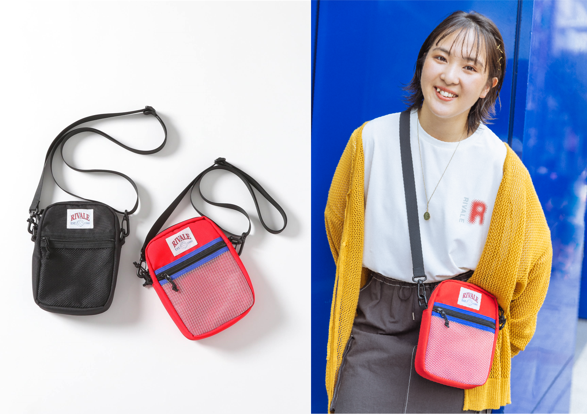キャップとおそろいのカレッジ風ロゴを入れたショルダーバッグ。試合観戦にもおでかけにも丁度いいミニサイズです。