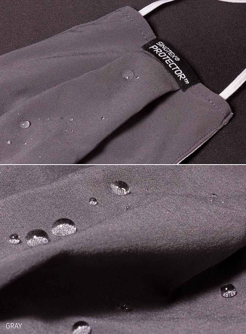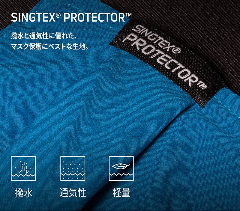 「SINGTEX PROTECTOR+」マスクカバーは耐久性に優れた生地を外側に使用することで水分の侵入を防ぐ撥水性を持たせています。