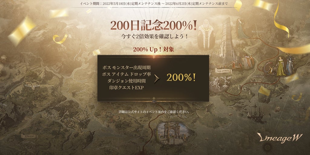 「リネージュW」サービス開始200日間を記念して、多様な恩恵を得られるイベントが開催されます。