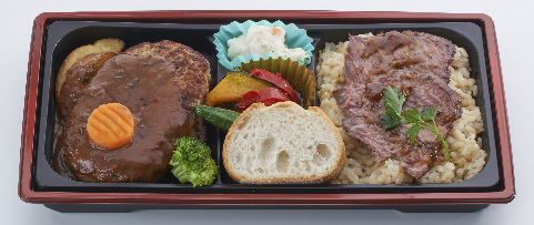 〈イーション〉デミグラスハンバーグ&牛サガリのガーリックライス御膳 1,190円