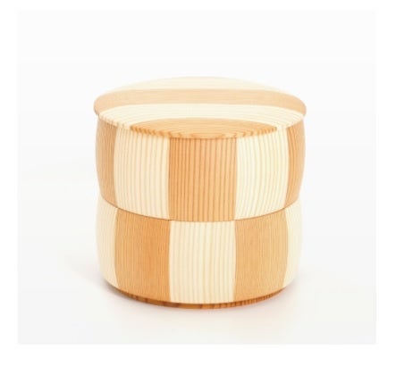 杉の赤身部分と白太部分を伝統の桶樽工法で結い合わせ、モダンなデザインに仕上げました。ウレタン塗装を施した油汚れに強いお弁当箱です。