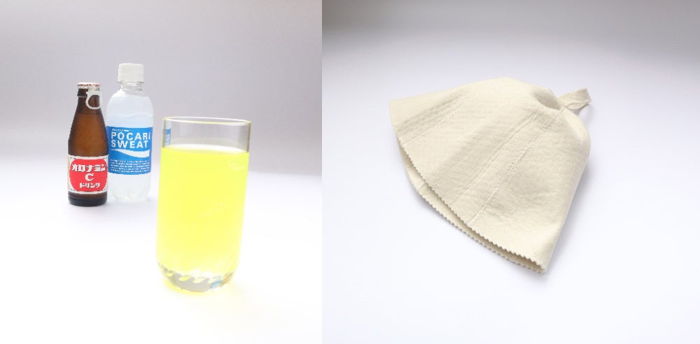 サウナで失われた水分補給に適した、サウナーに人気の「オロポ(オロナミンCとポカリスエット)」(写真:左下)をプレゼントいたします。お部屋でゆっくりと水分チャージ!
