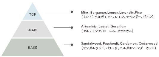 ミント*やベルガモットの瑞々しく爽やかな香りから、サンダルウッドやパチョリの