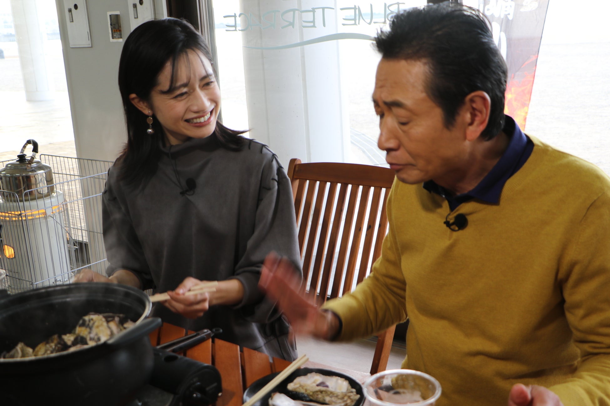 ご機嫌で次に向かったのは泉佐野のお隣、貝塚市。【二色の浜公園】内にある【牡蠣小屋ブルーテラス】で『牡蠣の白ワイン蒸し』をいただきます。
