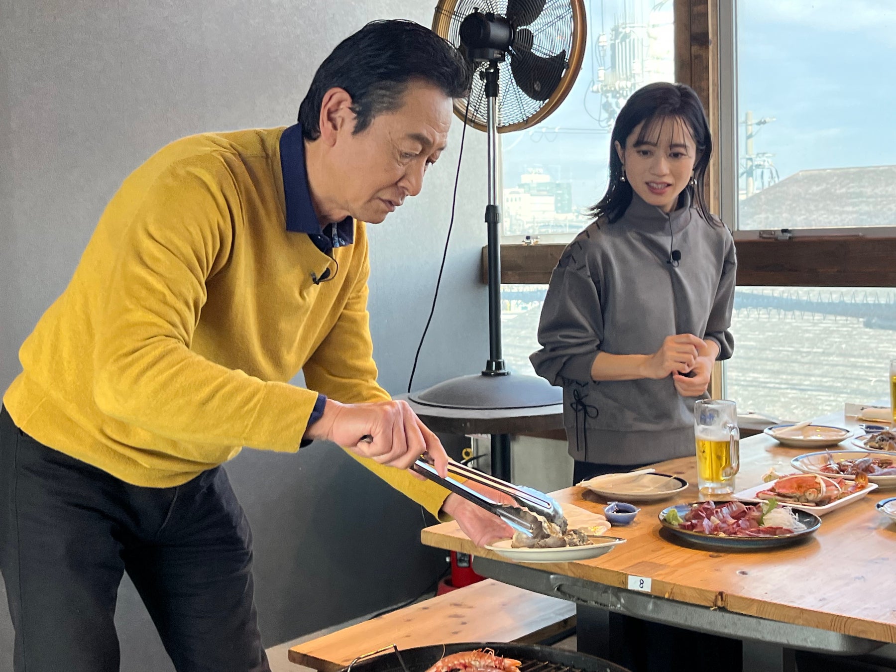 市場の2階にはBBQ施設があるとのことで2人も食材を買い込んで2階へ。『ツバスのお造り』に、『渡り蟹』や『天然足赤エビ』、『ミヤコボラ貝』は網焼きで。