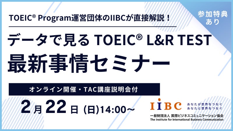 IIBC×TAC株式会社共催、2/22(日)オンラインセミナー開催!TOEIC® L&R TESTの最新情報や活用事例、スコアアップ戦略を解説!