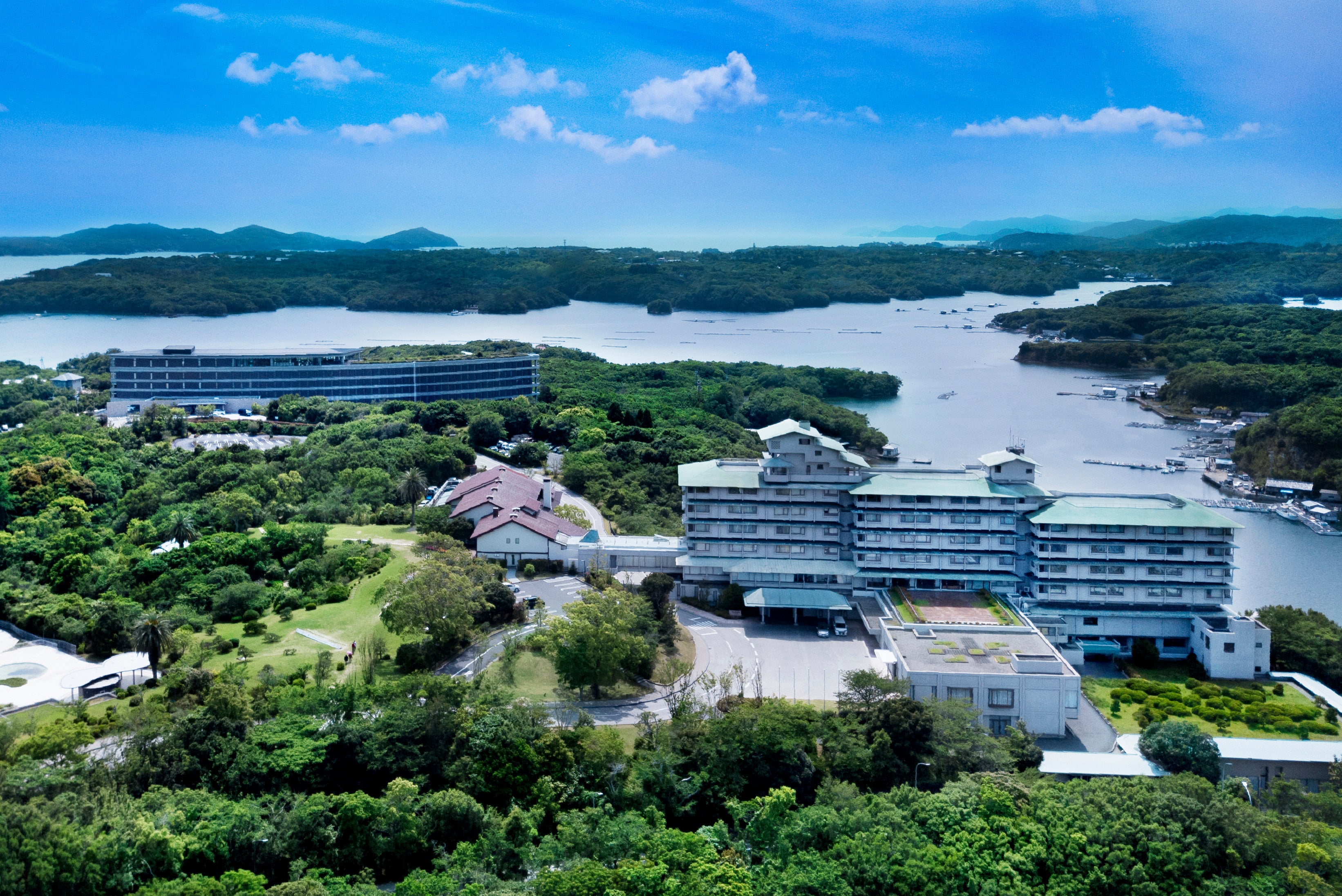 三重県の志摩半島南部、美しいリアス海岸や大小さまざまの島を有し、伊勢志摩国立公園の自然豊かな賢島にあり、穏やかな英虞湾海と深い森に抱かれた大人のラグジュアリーリゾートです。9万平米の広大な敷地と多彩なアクティビティでご滞在を彩るひとときを提供しています。また、両館には4つのレストランとカフェを備え、豊穣の海の恵みと三重の美食をお楽しみいただけます。英虞湾に沈む夕景では、リアス海岸に浮かぶ島々、名産でもある真珠養殖の筏が織り成すシルエットが神秘的な光景。その豊かな自然が「日本の原風景」とも称された、ここにしかない緩やかな時の流れをお過ごしください。