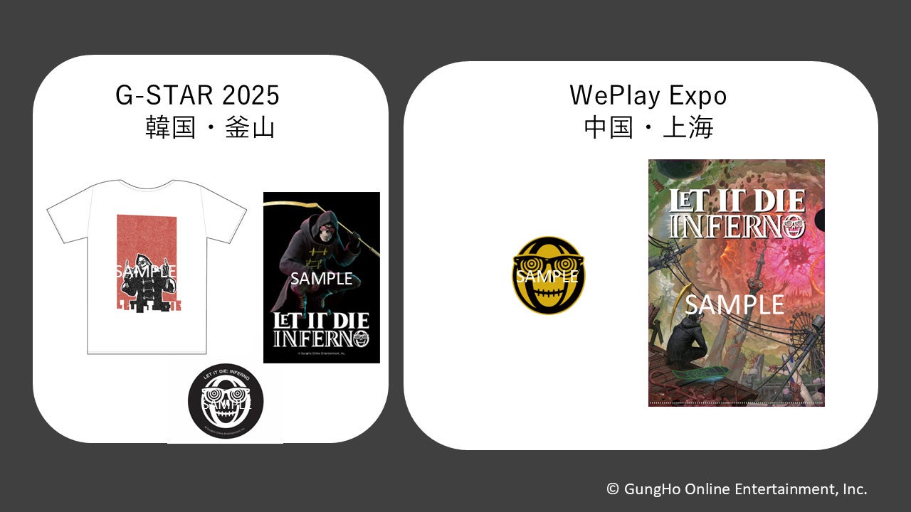 日本国内のみならず、韓国・釜山で2025年11月13日(木) から開催されるゲームショウ「G-STAR 2025」、中国・上海で11月22日(土)から行われる中国最大級のゲーム展示会「WePlay Expo」など、海外のゲームイベントにも『LET IT DIE: INFERNO』が出展いたします。