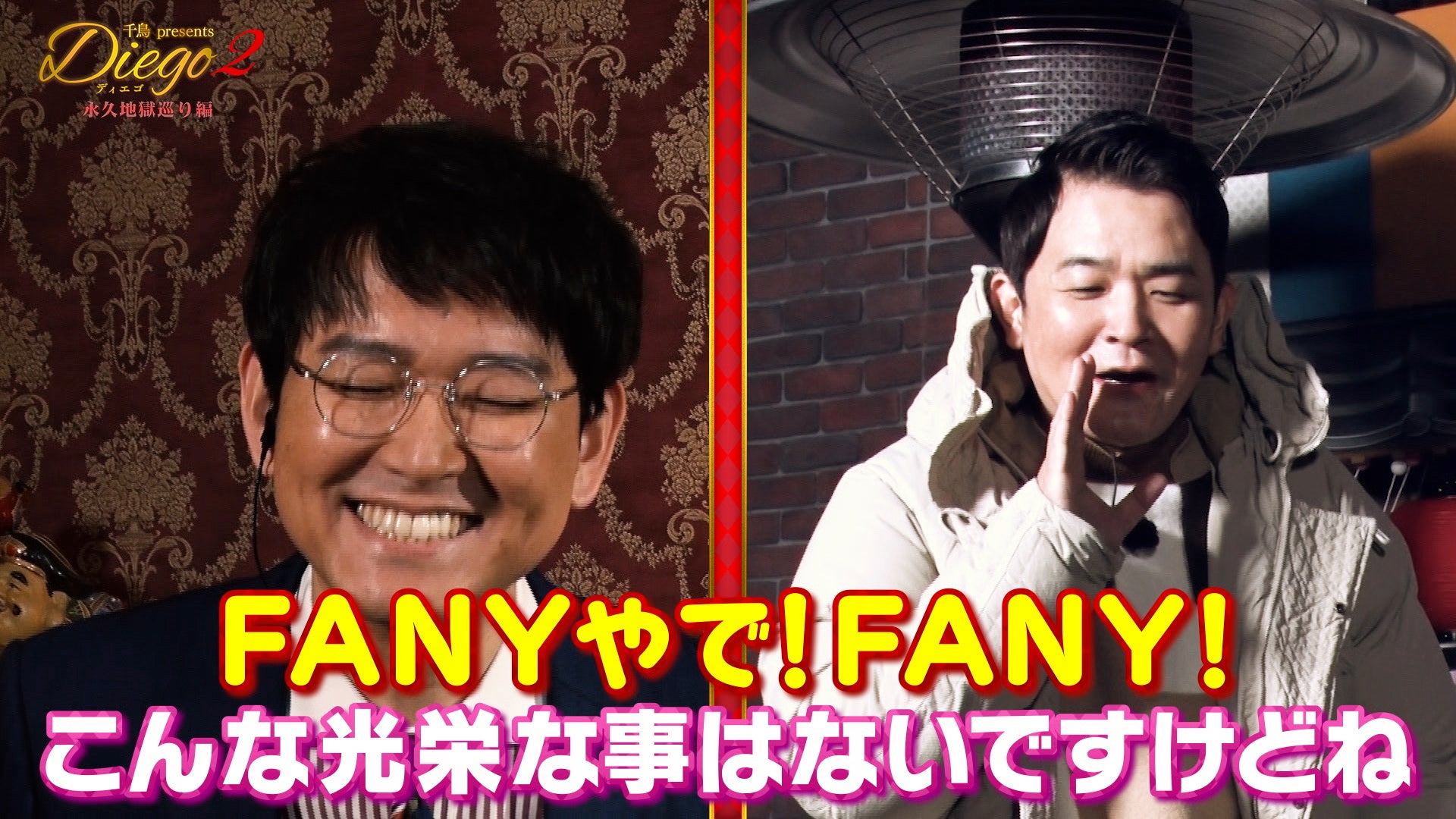 このたび、吉本興業株式会社と株式会社NTTドコモが共同運営するアプリ「FANYチャンネル」、Amazon Prime Videoのチャンネル「大阪チャンネルセレクト」およびNTTドコモが運営する「ひかりTV」にて、千鳥が出演するオリジナル番組『千鳥presents「Diego~ディエゴ~」シーズン2 永久地獄巡り編』 (全6話)の配信を開始いたします。本日2023年3月24日(金)正午より第1話~第3話を、 3月31日(金)正午より第4話~第6話を配信いたします。