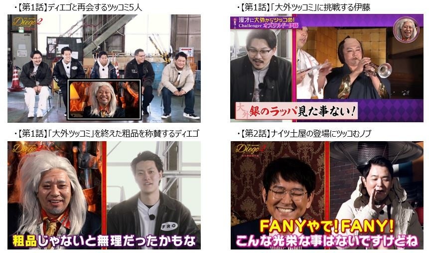 本番組は昨年配信され話題となった『千鳥presents「Diego~ディエゴ~」』のシーズン2。千鳥・ノブ、シソンヌ・長谷川、ウエストランド・井口、霜降り明星・粗品、オズワルド・伊藤の5人のツッコミ芸人が持ち前の“ツッコミ力”を駆使して、謎の大富豪ディエゴ(千鳥・大悟)から課された「お笑い試練」に立ち向かう、お笑い純度100%のバラエティ番組です。