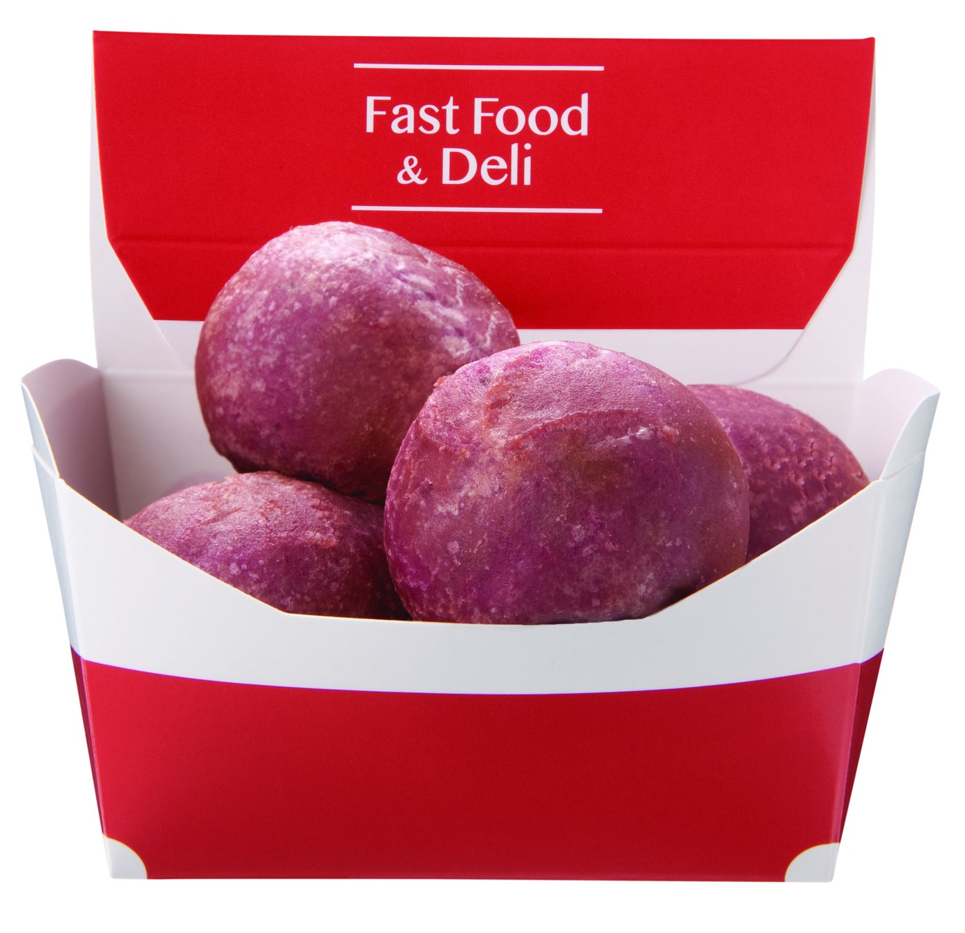 【内容】もっちりとした生地に、熱々さつまいも餡を包み込んだおやつにもぴったりな「さつまいもボール」です。生地に紫いもを練りこむことで味に深みを出し、中の餡に使用しているさつまいもは、追熟させることでさつまいも本来の甘みを最大限に引き出しました。