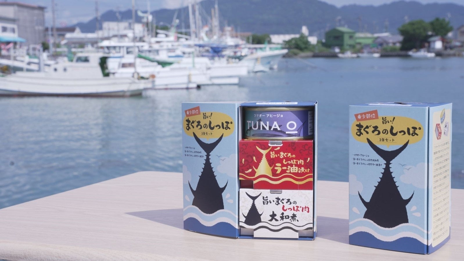海と日本プロジェクトとのコラボ限定パッケージでは、ツナオー アヒージョと、旨いまぐろのしっぽ肉ラー油漬け、旨いまぐろのしっぽ肉大和煮の3種類のまぐろのしっぽ肉の味が楽しめる缶詰をセットにしました。静岡の海の恵みを丸ごと感じてください。