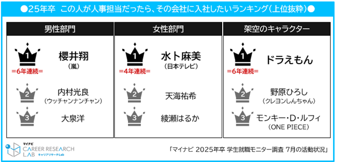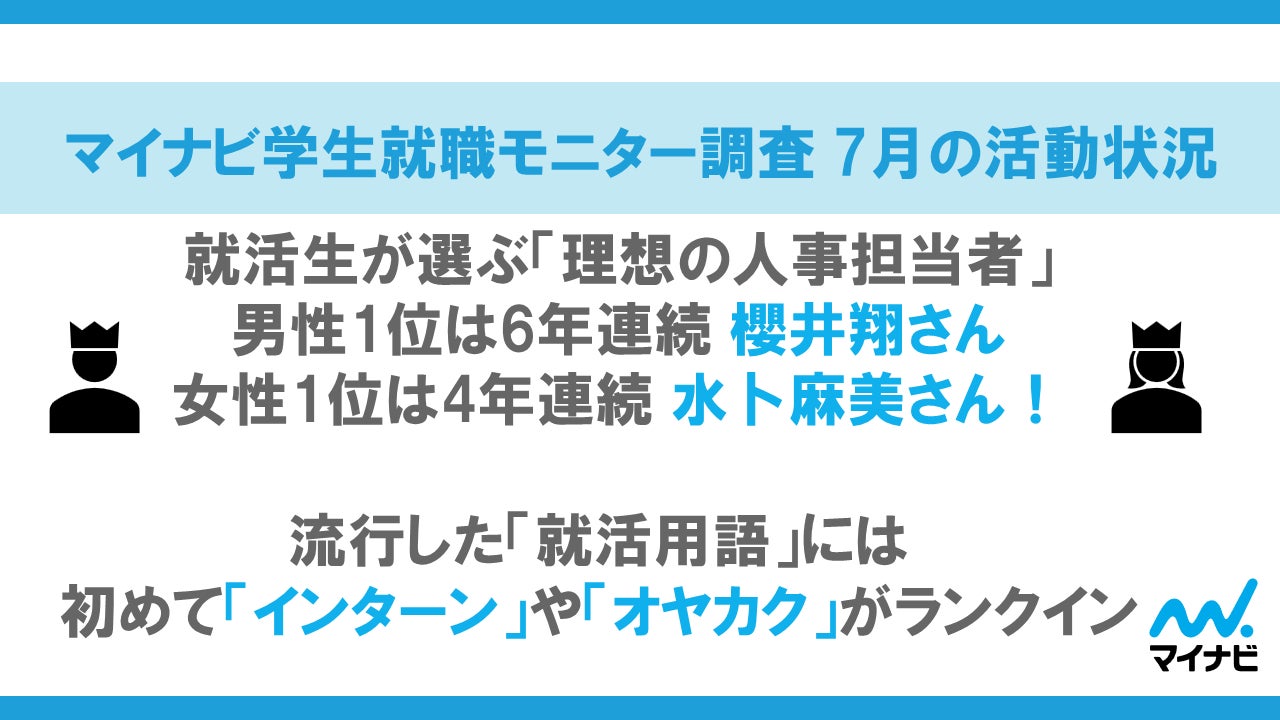 就活生が選ぶ「理想の人事担当者」 男性1位は6年連続 櫻井翔さん、女性1位は4年連続 水卜麻美さん! 流行した「就活用語」には初めて「インターン」や「オヤカク」がランクイン