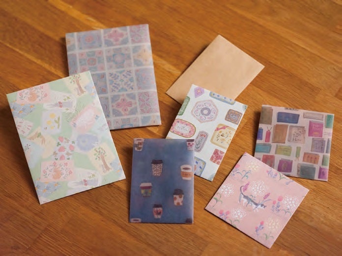 サイズは3種類(写真L判用袋、ポチ袋、スクエア袋)。手紙や写真を入れて贈ったり、ギフトに添えるカードを入れたり、さまざまなシーンで使えます。