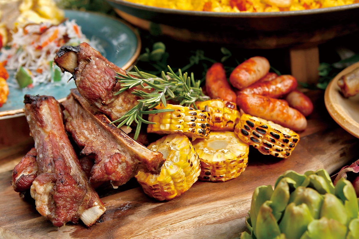 まるごとチキンレッグ1本+約24種類のフード食べ放題+3種のBBQグリル[スペアリブ・グリルソーセージ・グリルコーン]食べ放題+飲み放題120分