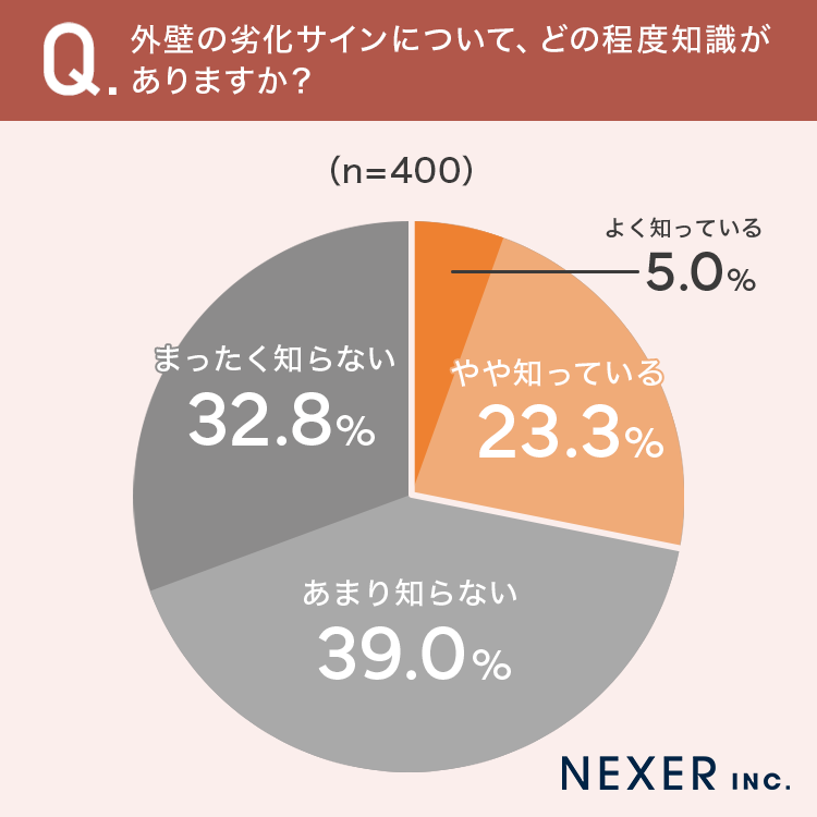 外壁の劣化サインを知っているのは、合計28.3%しかいませんでした。