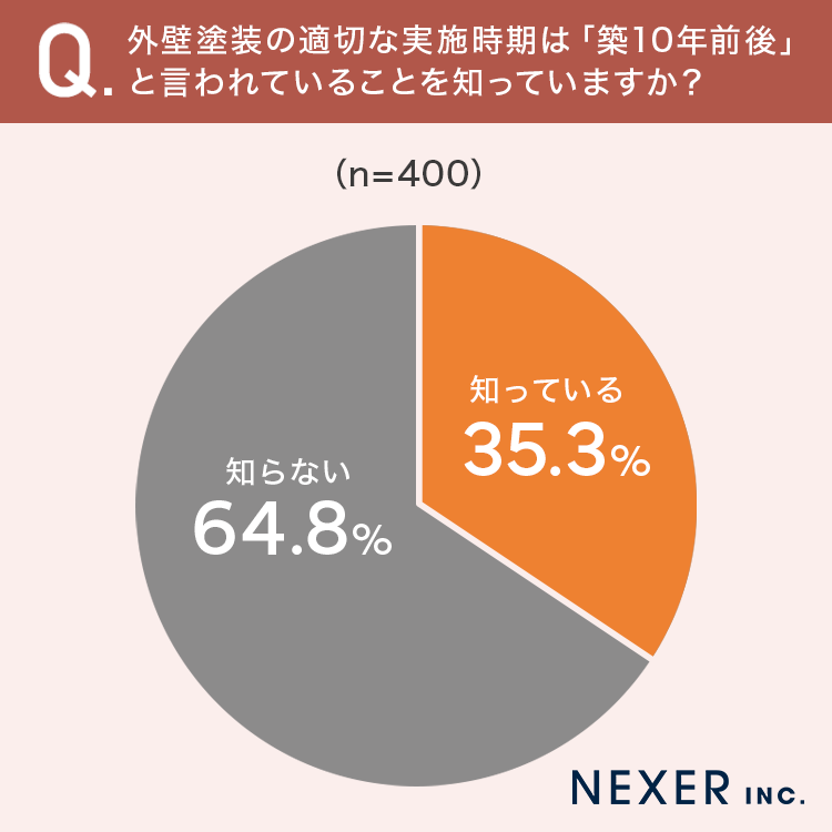 外壁塗装の適切な実施時期は「築10年前後」と言われていますが、そのことを知っているか聞いてみました。