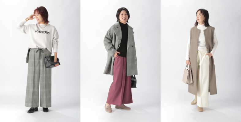 毎年大人気のワイドパンツ、新登場のテーパードパンツ・ナロースカートは全骨格タイプに対応。