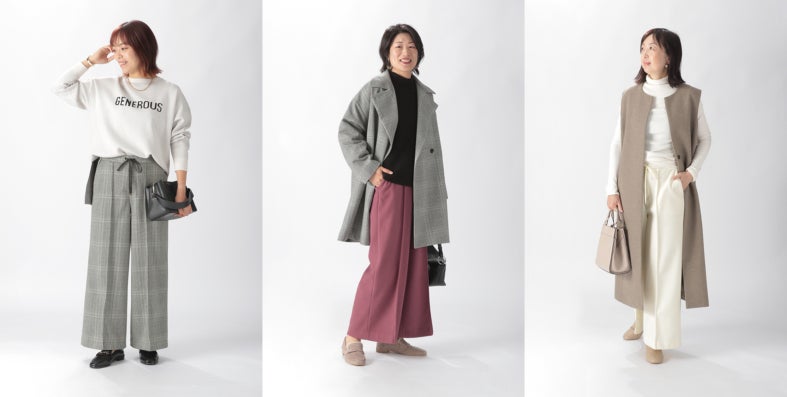 ウールライクシリーズは、カットソー素材でウールの質感を再現しながらも、チクチクしないなめらかな肌触りと、ご家庭での洗濯が可能というお手入れのしやすさが特徴。着心地・お手入れのしやすさを叶えながら、上品に大人女性の冬のコーディネートを1ランクアップさせる、冬シーズンにピッタリのアイテムとなっています。毎年大人気のアイテム「ウールライクワイドパンツ」は今年も引き続き登場。秋の「サマ見えリラクシーテーパードパンツ」に続き、「全骨格タイプに似合う」というお墨付きも獲得しました。