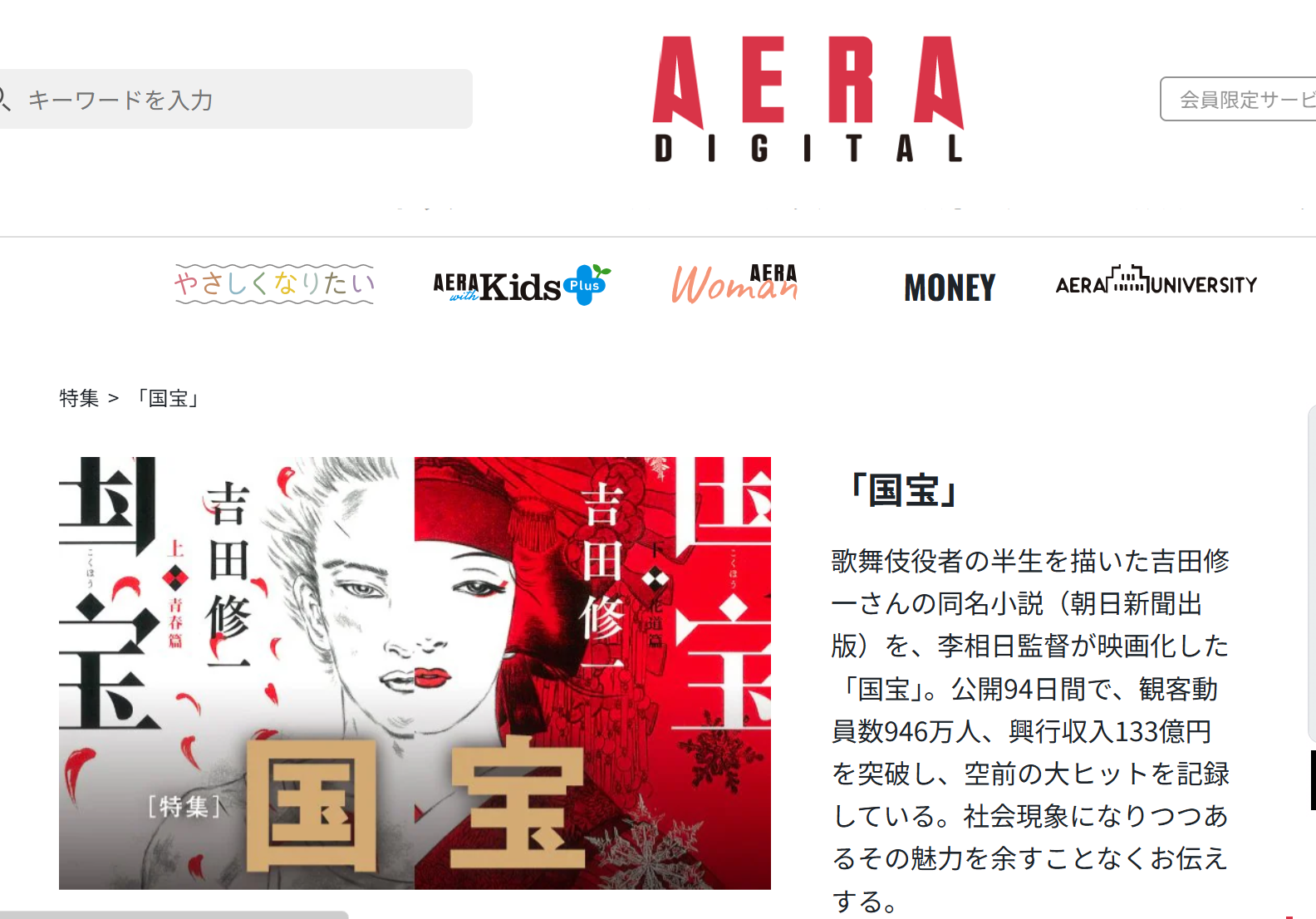 朝日新聞グループの朝日新聞出版の「AERA DIGITAL」では「国宝」ページを設け、独自のコンテンツを提供しています。