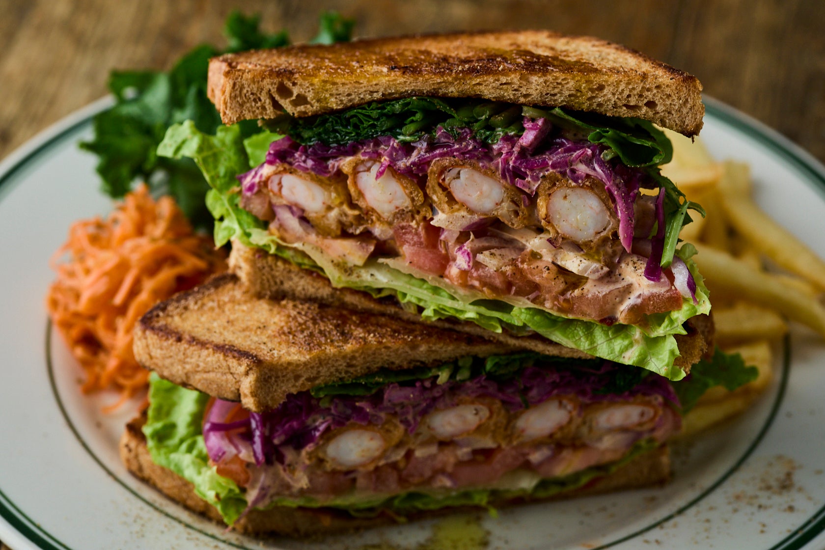 J.S.バーガーには、アボカドやフレッシュオニオン、トマトが入ったものや、ソフトシェルシュリンプサンドイッチにはグリーンカール、ルッコラ、レッドキャベツのマリネが使用されており、断面からも野菜の豊富さが感じられる商品です。