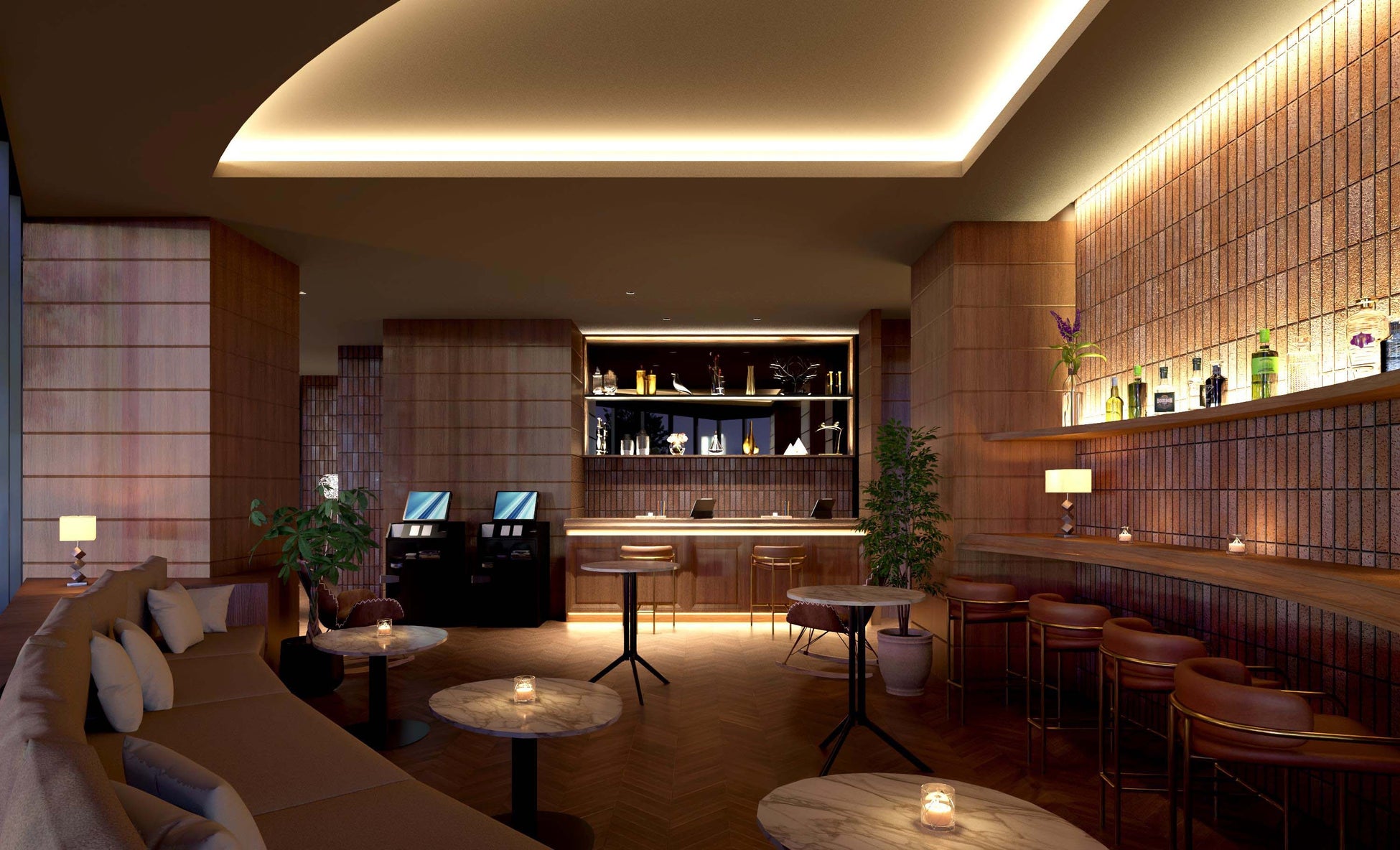 ・バーをイメージした照明や調度品でミニマルシックな空間を演出