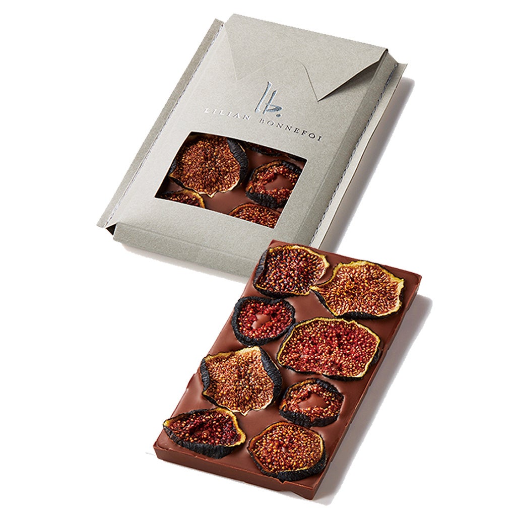 リリアンさんが自家製でドライにしたイチジクをたっぷりとあしらったミルクチョコのタブレット。