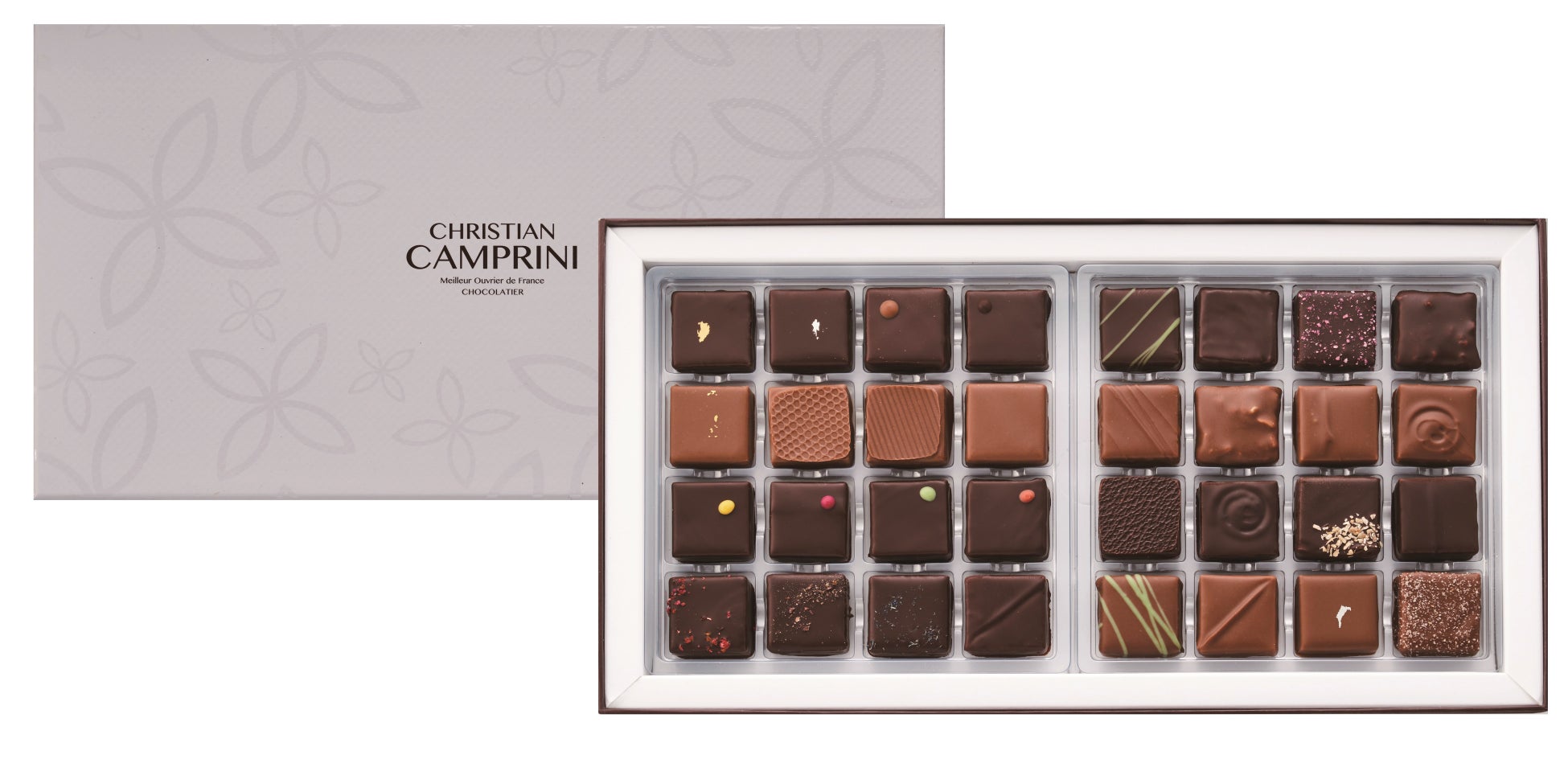 十八番の柑橘系、カカオ産地別ガナッシュ系、プラリネ系、はちみつ系など、カンプリニさんのすべてを味わえるエクセレントでエレガントなスペシャルボックスです。