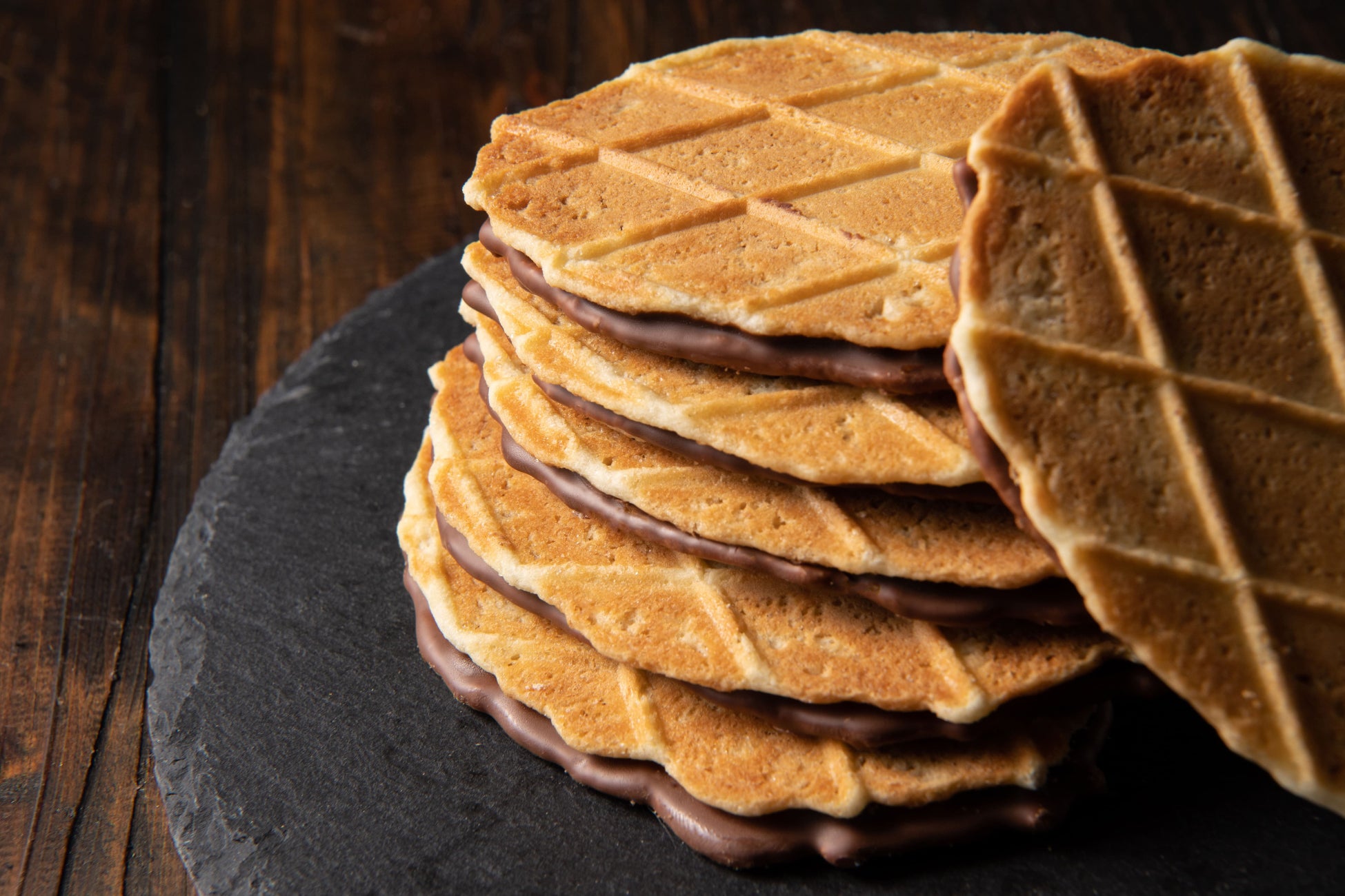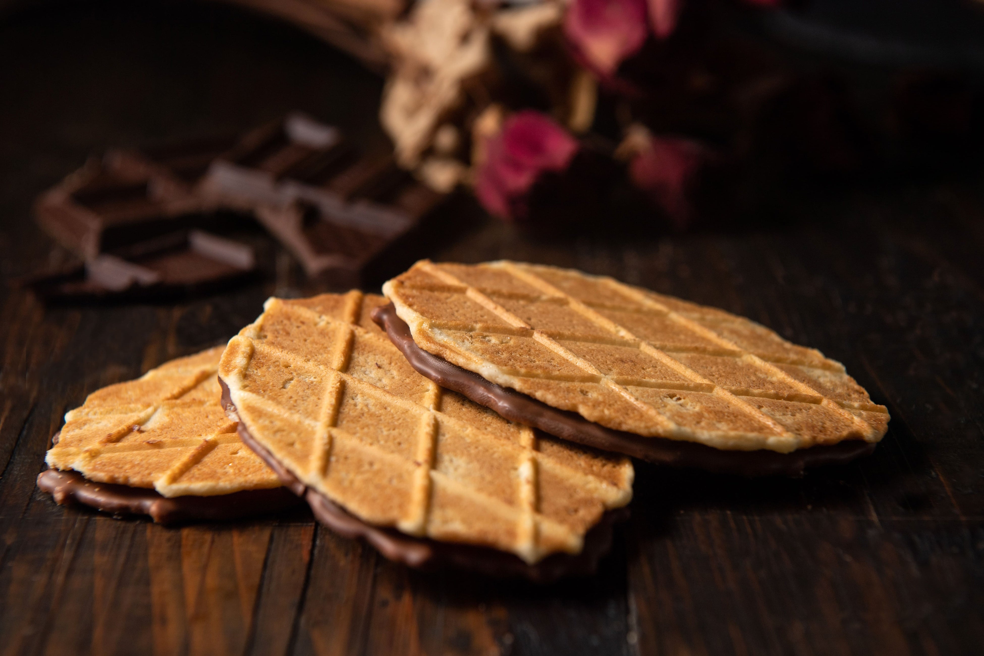 薄く黄金色に焼き上げたサクサクなワッフルクッキーでなめらかなチョコレートをサンド。サクッとした食感と、ふわっと香る香ばしさをお楽しみいただけます。