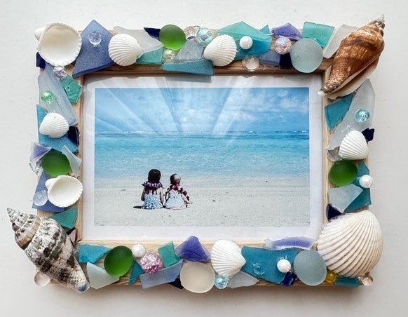 海の宝石とも称され、自然の力によって生まれた「シーグラス」を活用し、夏の思い出を形にするオリジナルフォトフレームです。海で拾ったお気に入りの貝殻を、綺麗に洗い飾り付けても素敵です。