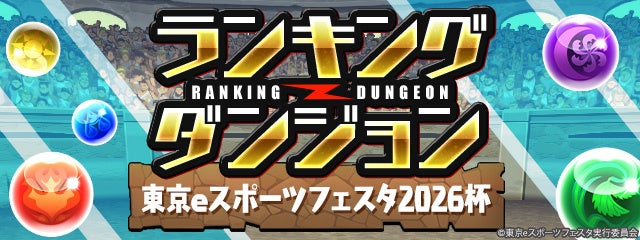 eスポーツイベント「東京eスポーツフェスタ2026」にてパズドラ部門の開催が決定しました。2025年11月17日(月)より、ゲーム内のランキングダンジョンでオンライン予選を実施予定です。事前エントリーの上、腕に自信のある方は、ぜひご挑戦ください。
