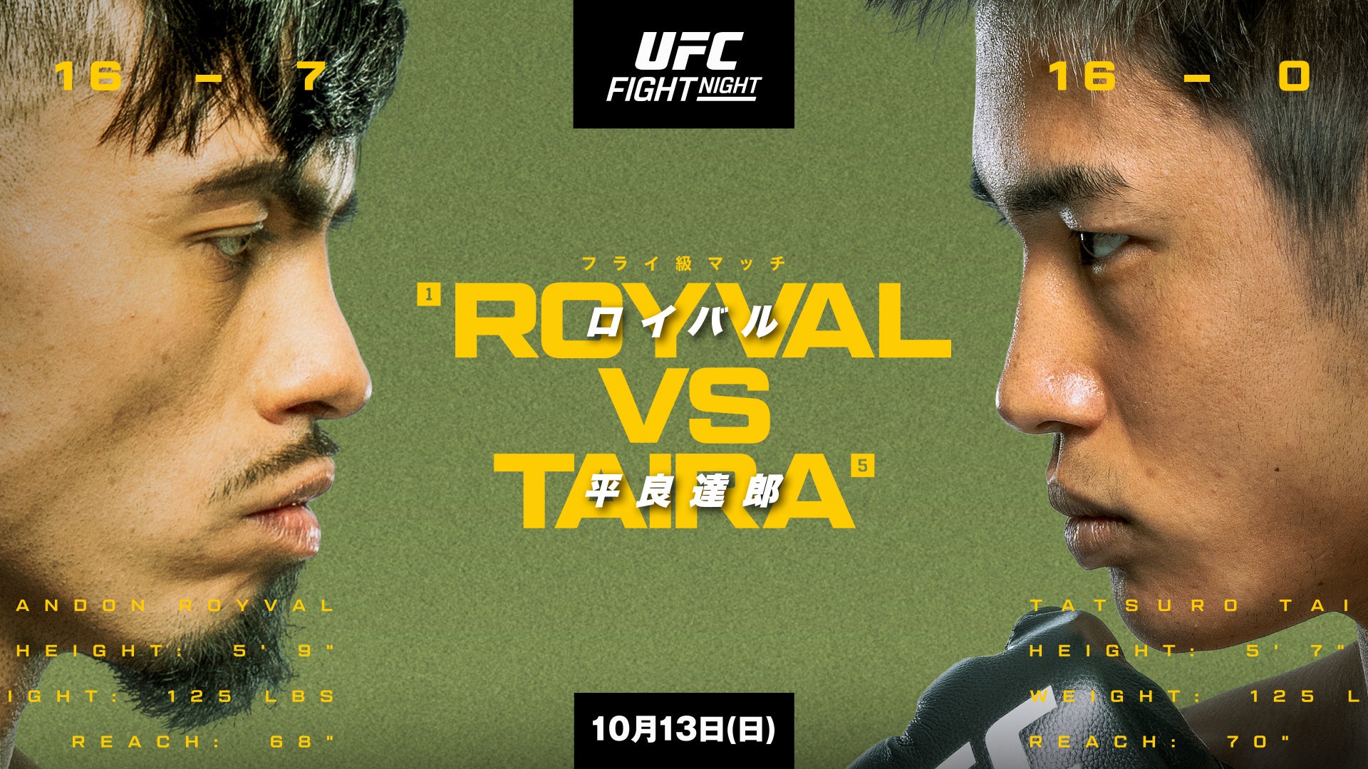 平良にとってUFC7戦目はUFCに参戦後2度目の5ラウンドマッチ。対戦相手のロイバルは2月の前戦でもモレノを相手に5ラウンドにもつれ込み、スプリット判定で勝利するなど抜群のスタミナを誇るなか、5分5ラウンド戦において25分間のフルラウンドを経験していない平良の持久力と忍耐力が試されます。