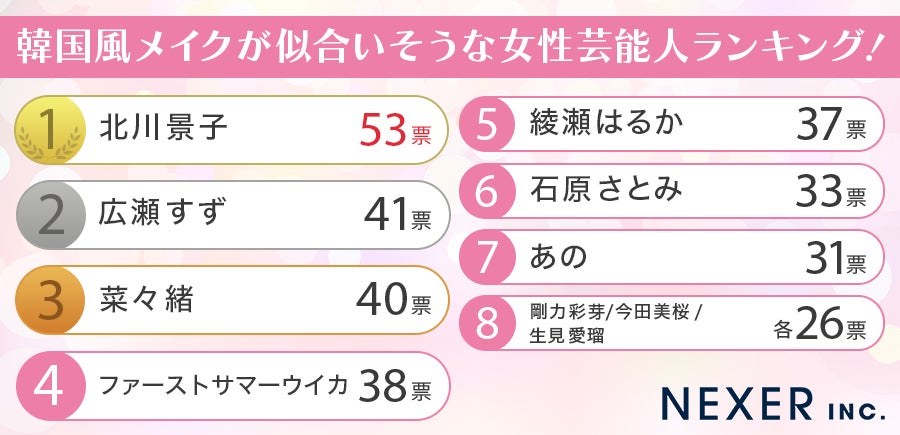 株式会社NEXER・韓国風メイクが似合いそうな女性芸能人に関する調査