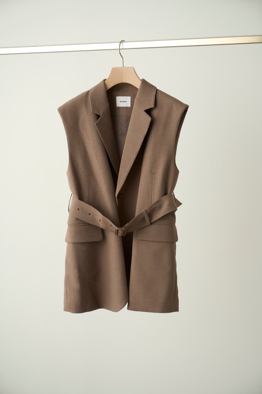 リラックスできる程よいサイズ感のノースリーブテーラードジャケット。