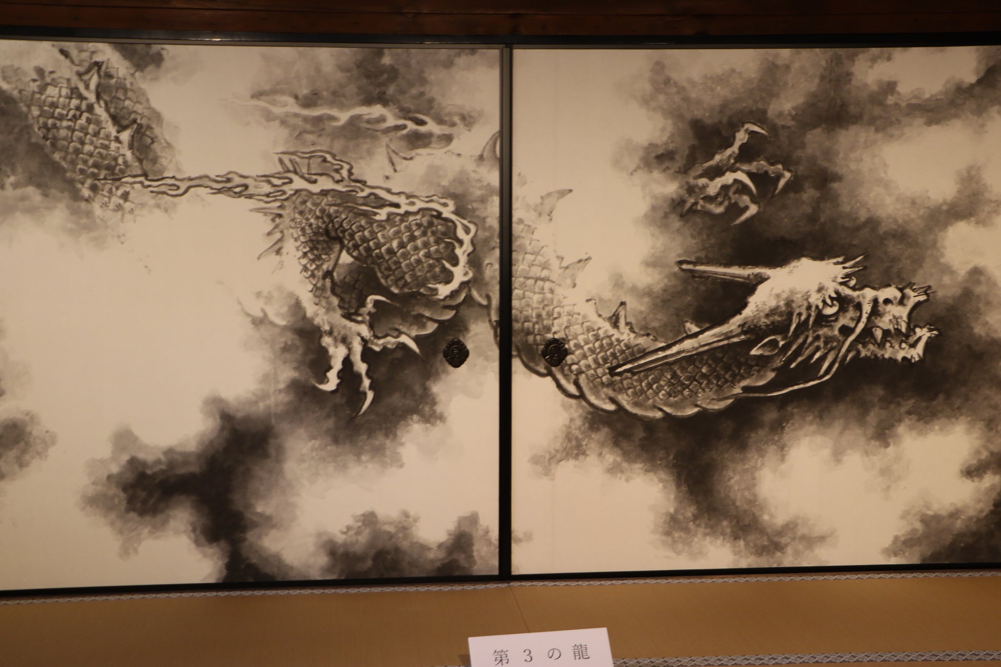 特別公開されている襖絵≪雲龍図≫を拝観することに。龍の一生をテーマに書き上げた9種類の龍で構成された作品です。【西の庭】などを散策した後は北野天満宮方面へ。