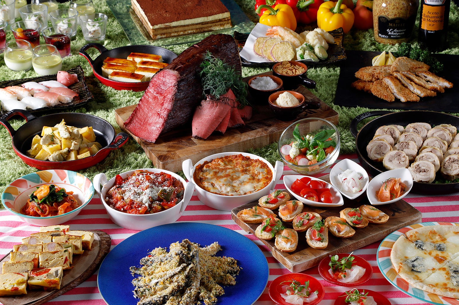 イタリアの定番料理であるパスタやピッツァをはじめ、香ばしく揚げ焼きにした豚肉の旨味とポルチーニの芳醇な香りが広がる「ミラノ風ポークカツレツ ポルチーニソース」や、シチリア地方の家庭料理「鰯のベッカフィーコ」など、イタリア各地の郷土料理が勢ぞろいします。食後には「ティラミス」や「マチェドニア」など、イタリアならではのスイーツもご用意。さらに、レギュラーメニューには「国産牛ローストビーフ」や揚げたての「天ぷら」などが新たに加わり、内容が一層充実します。多彩なラインナップを、心ゆくまでお楽しみください。