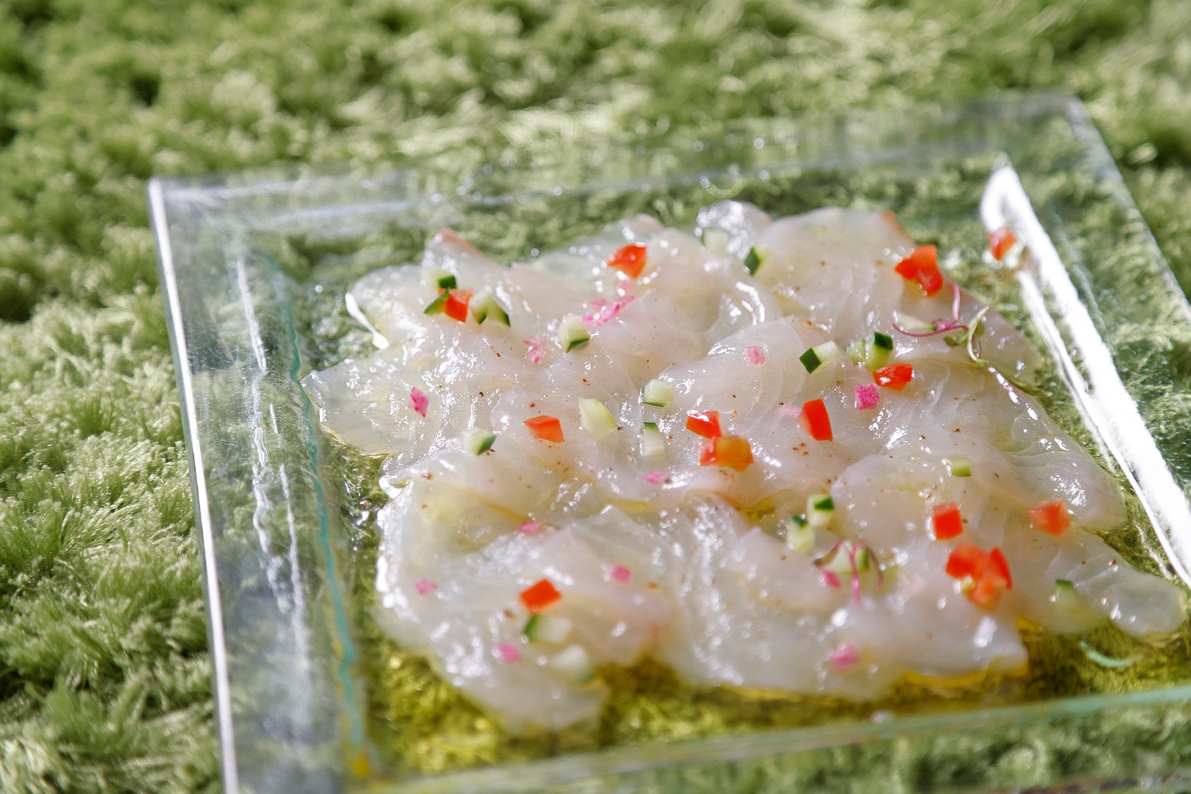 魚介のカルパッチョ 柑橘バルサミコソース/ハーブチキンテリーヌ ルッコラマヨネーズ/鶏ももとレバーのインヴォルティーニ/ピッツァ(クアトロフォルマッジョ)