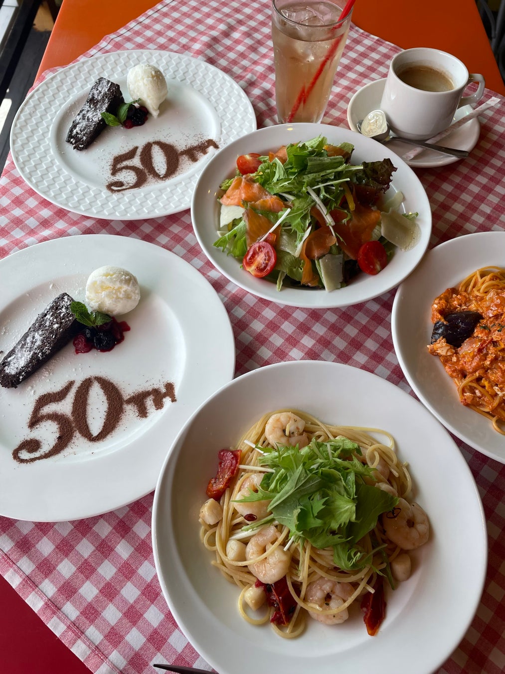 ②50周年2名さまセット(パスタ・サラダ・ドリンク・デザート)¥5,050(プリモスキー場店)