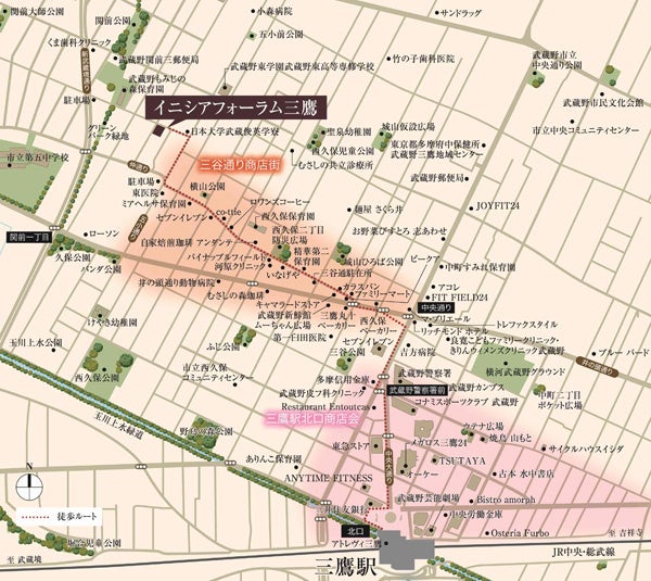 交通:総武中央線「三鷹」駅北口まで徒歩17分、中央線「三鷹」駅北口まで徒歩17分、中央線「吉祥寺」駅北口までバス13分「第五小学校」バス停まで徒歩5~6分