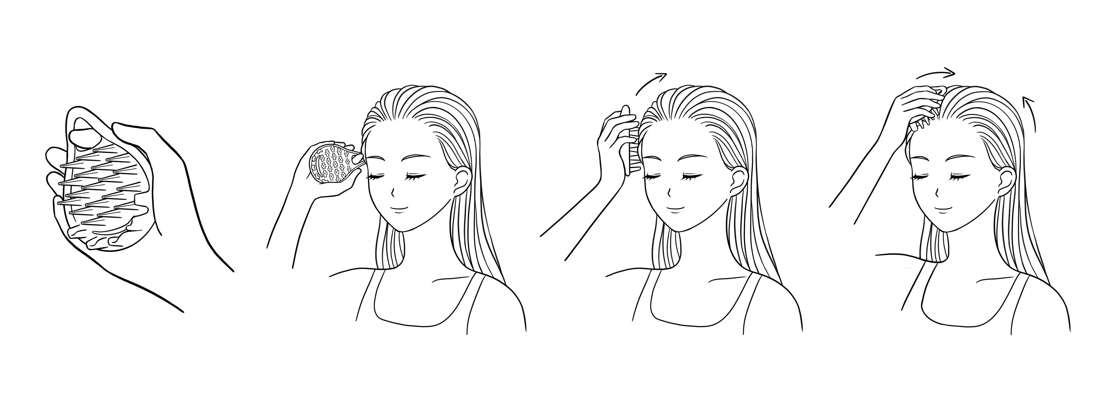 ② 指の腹を使い、ジェルをなじませながら頭皮をやさしくマッサージしてください。
