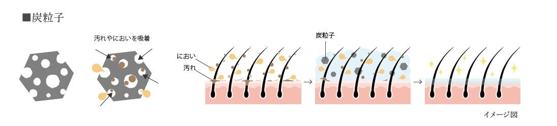 ■炭粒子とアルカリイオン還元水の力で頭皮の汚れをすっきりオフ