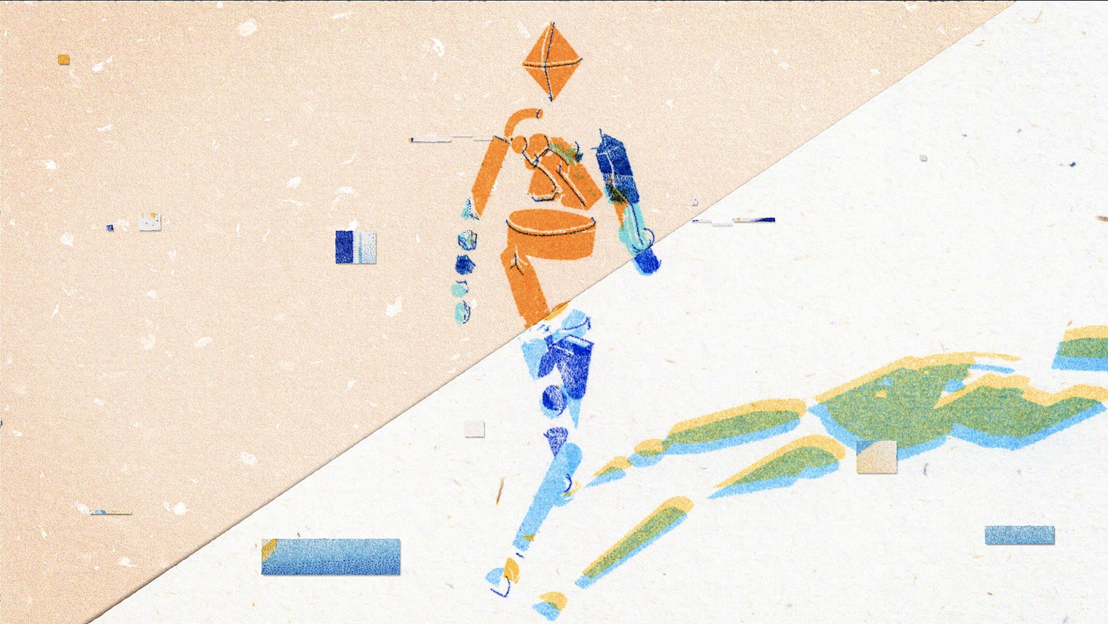 街を行き交う人物の中にいる、自分の道を突き進みながら世の中を生きる若者を表現しました。全編、リソグラフ印刷機を使ったアニメーション作品となっております。
