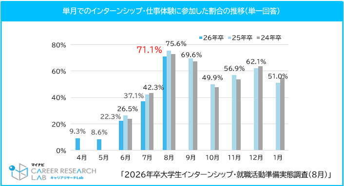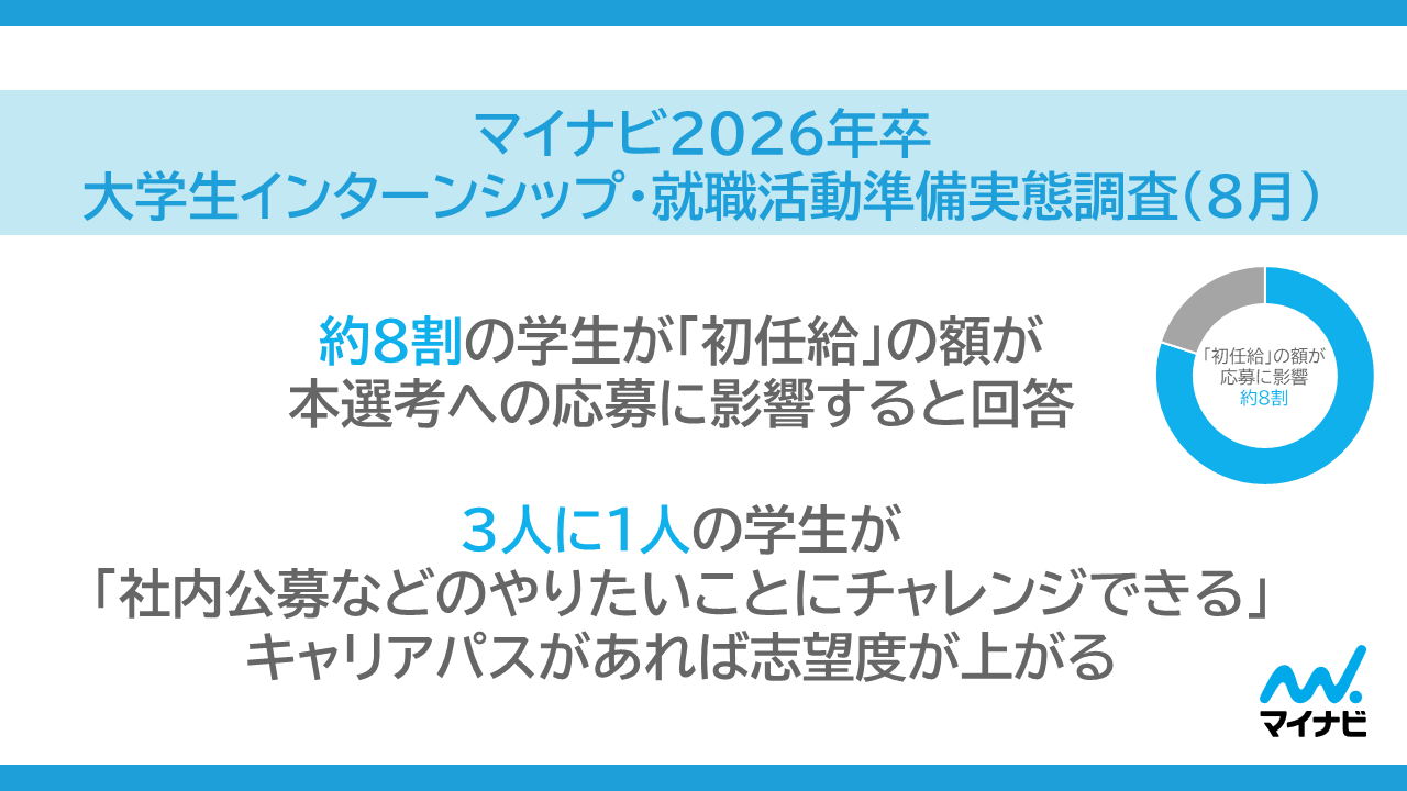 「マイナビ 2026 年卒 大学生インターンシップ・就職活動準備実態調査(8 月)」を発表
