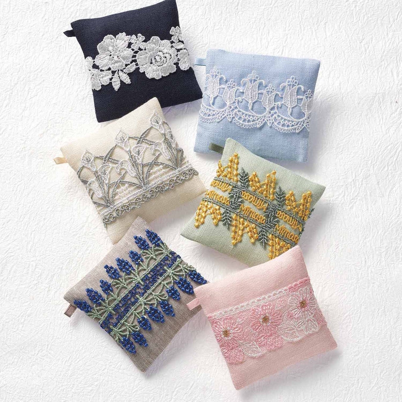 匂い袋 てのひらレース (生地:麻使用、約タテ7.5×ヨコ7.5×マチ1.0cm)