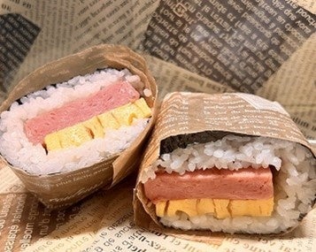 沖縄紅豚100%使用のランチョンミートに〈太郎〉の玉子焼きを合わせ酢飯で作る、沖縄のポークたまごおにぎり。