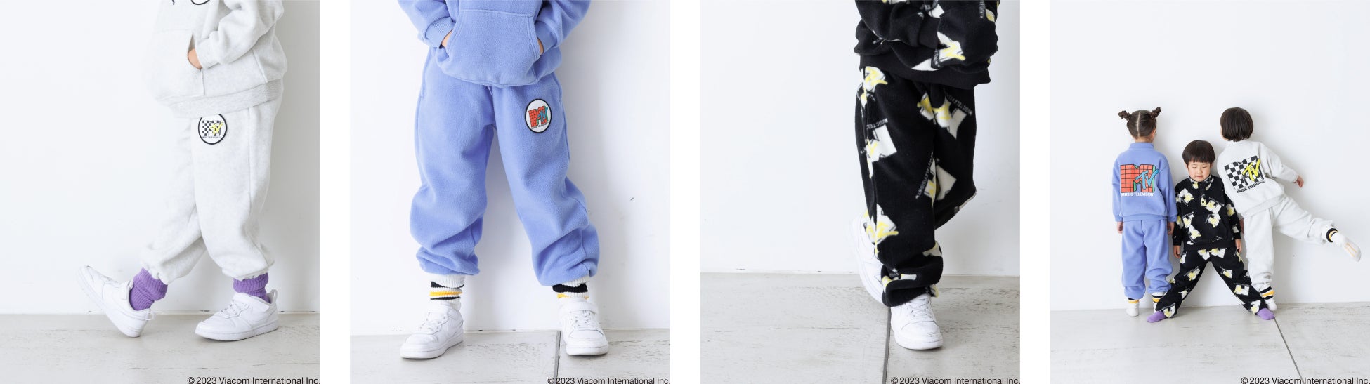コラボアイテムはレディースアイテムで2型、キッズアイテムで4型の計6型をご用意。レディースアイテムは1枚で着映えするスウェットや軽くて温かいフリース素材のトップスを、キッズアイテムではレディースアイテムと同様のスウェットやフリース素材のトップスに加えて、セットアップとして使えるパンツや1枚あると便利なブルゾンを作成しました。オリジナルアートを使用したコラボアイテムは、ポップでカラフルな80’sムードをデザインに取り入れることで、古着屋さんで見つけてきたようなギーク感のある雰囲気に仕上がりました。着るだけで楽しい気持ちになれるラインアップです。