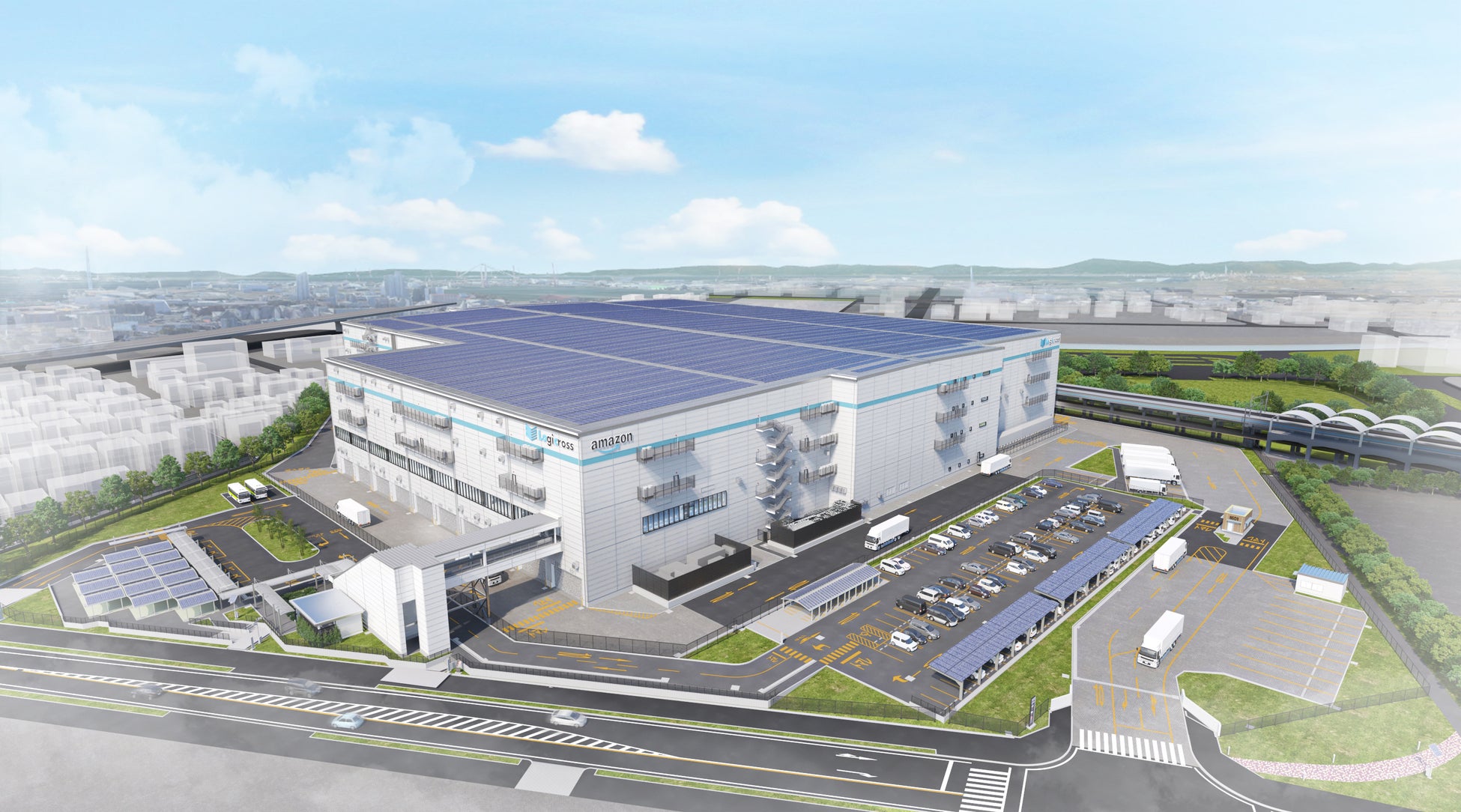 国内最大規模の地中熱空調やAmazonとして世界初となる壁面太陽光発電を導入する Amazon西日本最大の拠点