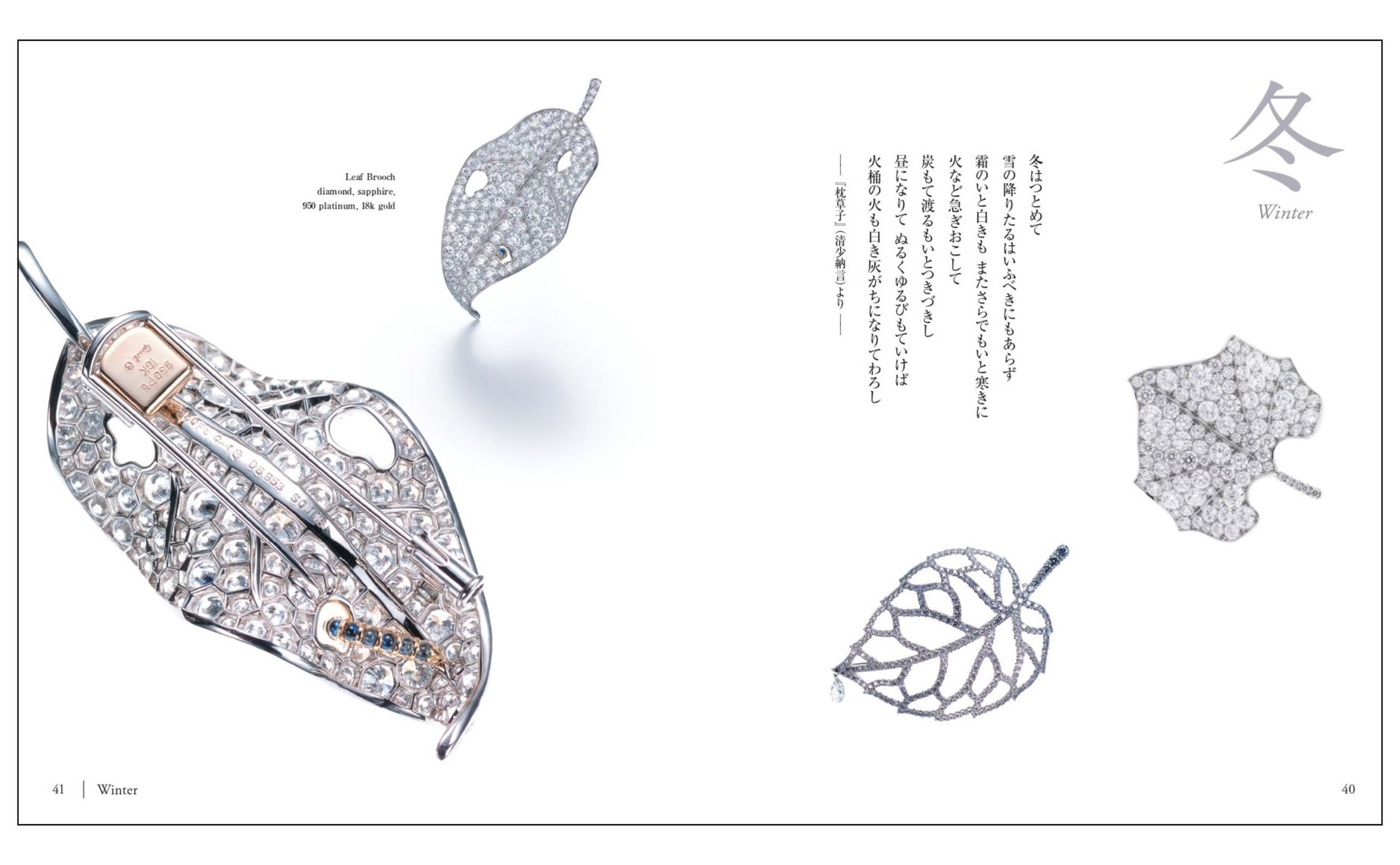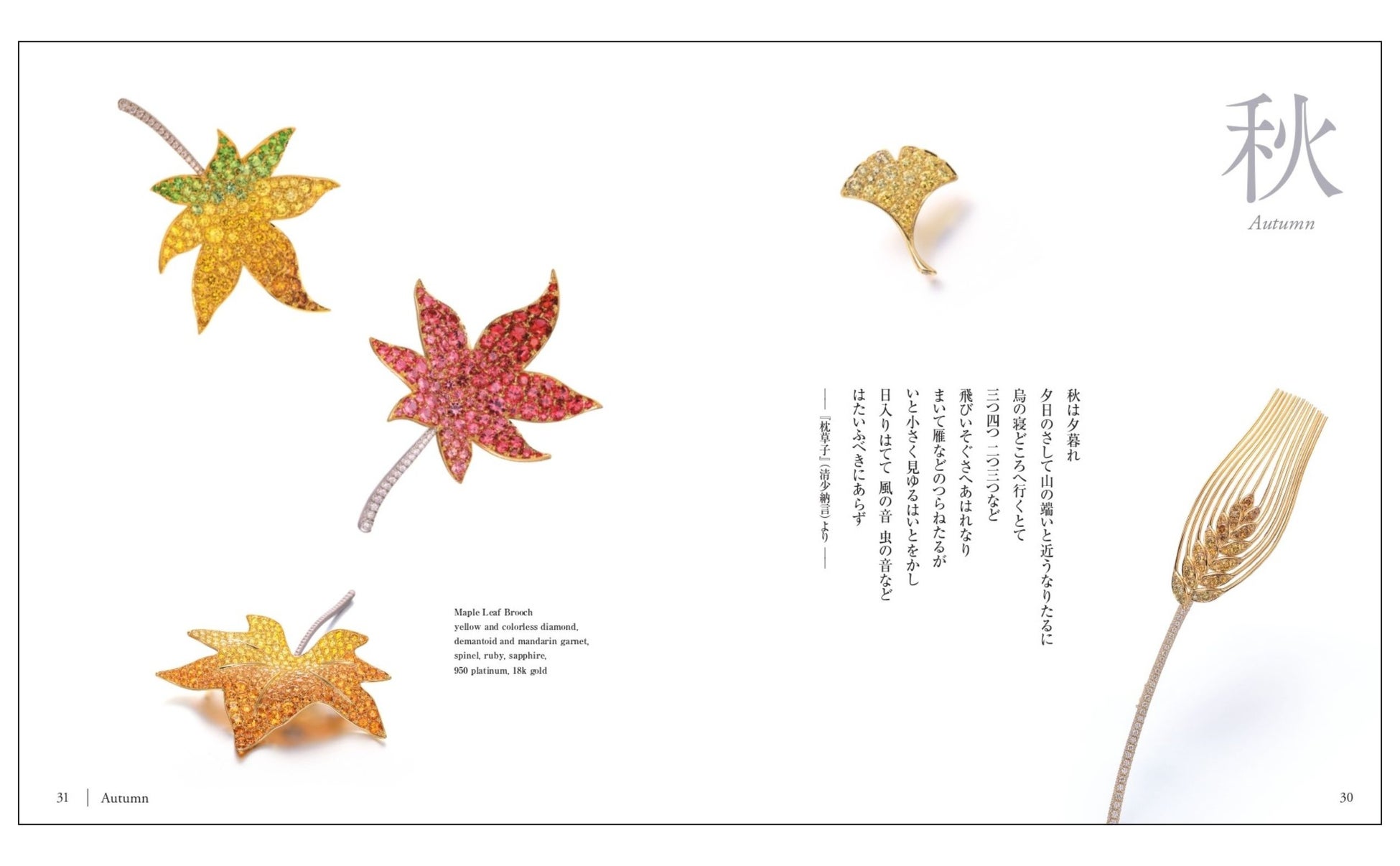 四季を表現する石たちのグラデーションは唯一無二の美しさで、また真珠やダイヤモンド、カラーダイヤモンドといった素材にも、妥協のない石選びと細やかな技法が光ります。